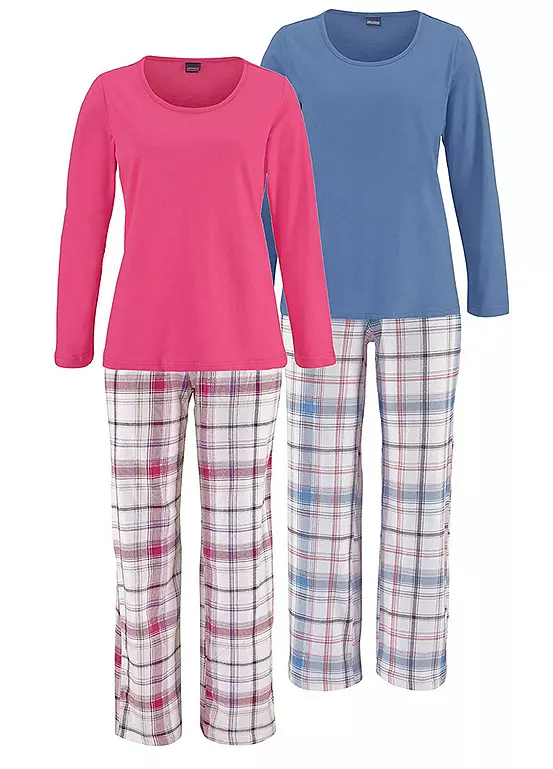 In a pack of two, you won’t be short and cute yet practical PJs. The long sleeved top with a round neckline is perfectly paired with long, checked trousers with an elasticated waistband. The soft single jersey knit will keep you snug from bedtime to get-up-and-go time.