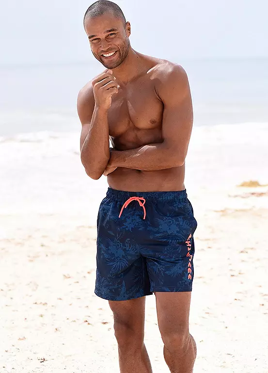 Fashionable swim shorts with side pockets, velcro rear pockets, elasticated waistband with outer drawcord for added comfort, as well as inner lining and small inner pocket. Side length size M approx. 43 cm (17 in).