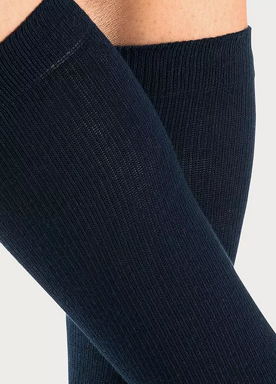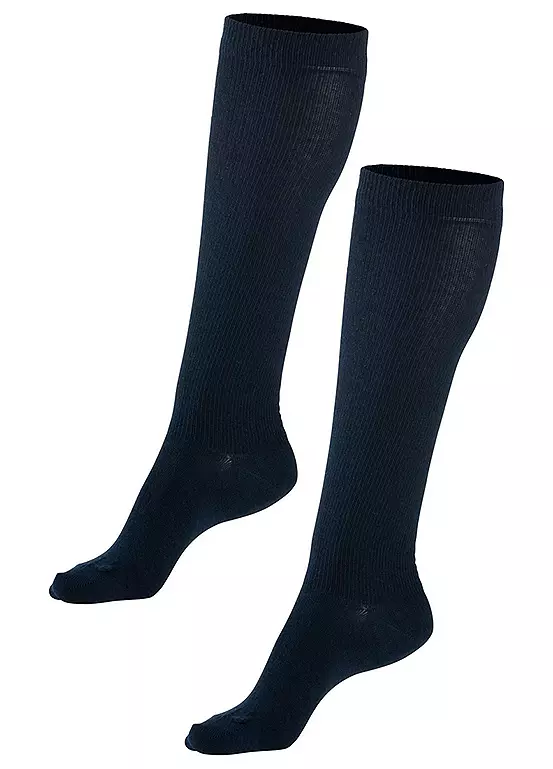 Compression stockings in a pack of two. In a calf-length for optimal blood circulation during sports and travel, they are comfortable to wear thanks to the high cotton content. Pack of 2.