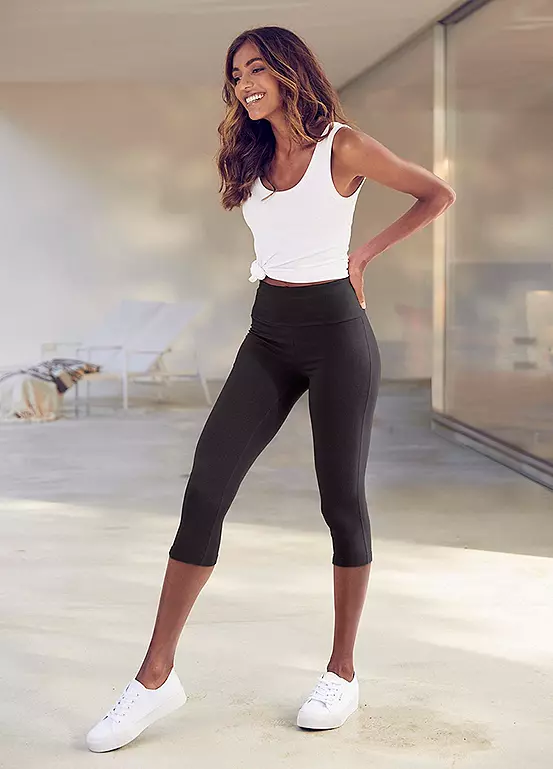 Sporty cropped leggings featuring a soft comfortable waistband that doesn’t slip and offers a perfect fit thanks to the elastane, perfect for yoga and gym sessions.