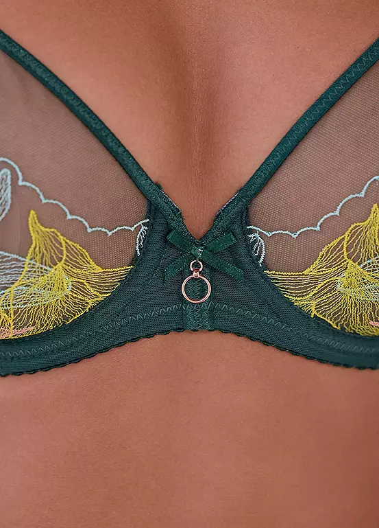 Elevate your lingerie game with our LASCANA Decorative Bow with Ring Embroidered Plunge Bra. This non-padded, underwired bra features a light high-apex shape and on-trend mesh cups with delicate embroidery. The fine decorative bow and accessory at the front centre add an extravagant touch. Designed with individually adjustable straps and back closure, this bra is created with love and passion in Hamburg. Upgrade your collection with this statement piece. Hand wash80% Polyamide, 15% Elastane, 5% Polyester