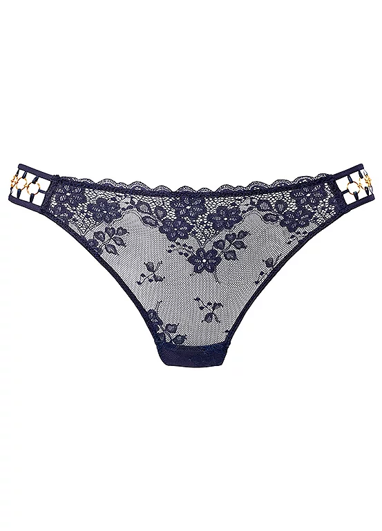 Seductive thong with decorative ring details on the sides. Made of slightly transparent, floral lace and features a mid waistline for a comfortable fit. Includes an integrated cotton gusset for added comfort. Created with love and passion in Hamburg. Hand washNot suitable for tumble drying85% Polyamide, 15% Elastane