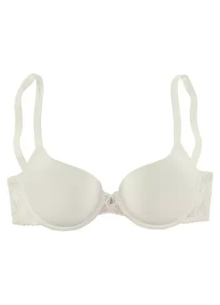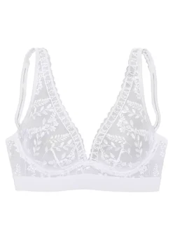 Feminine and elegant, this underwire bra features a delicate floral embroidered lace on the cups and a soft mesh back with a transparent look. The centre front is adorned with a fine decorative bow and pearl accessory, adding a touch of sophistication. Perfect for those who prefer non-padded bras, this full cup bra offers support and comfort while still looking stylish. Enhance your lingerie collection with this beautiful and versatile piece from LASCANA.