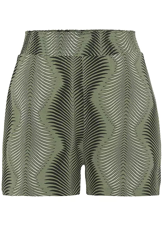 Fashionable pyjama short in a graphic all-over print. They feature a wide elasticated waistband and are made from a soft single jersey that feels great against the skin. Graphic print. With a high waist and an elastic waistband with a smocked look.