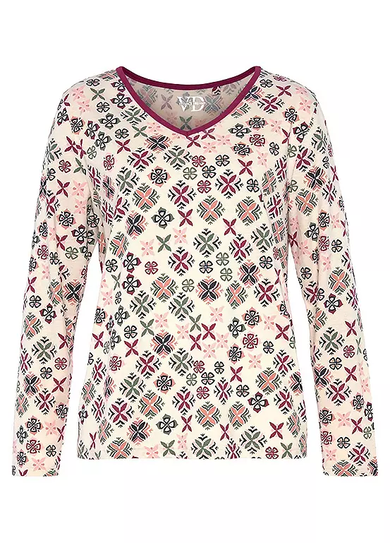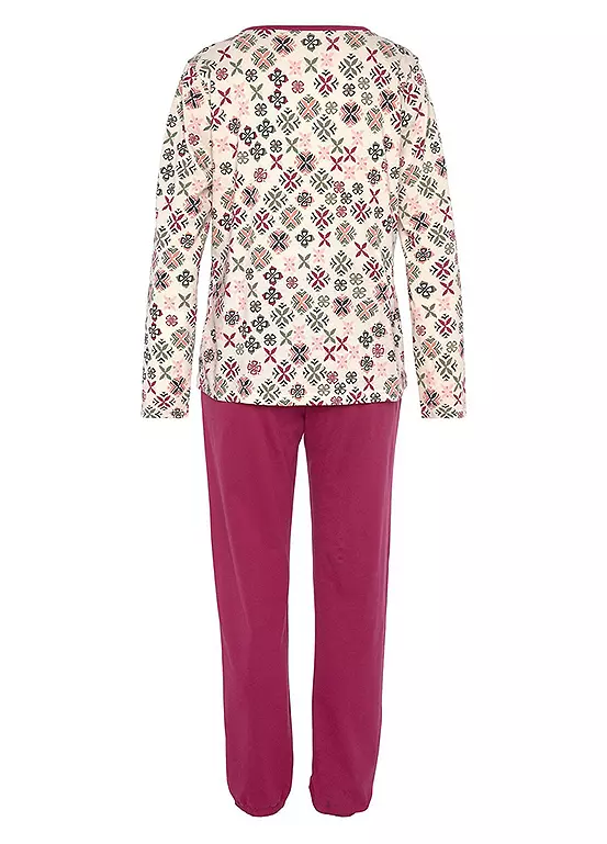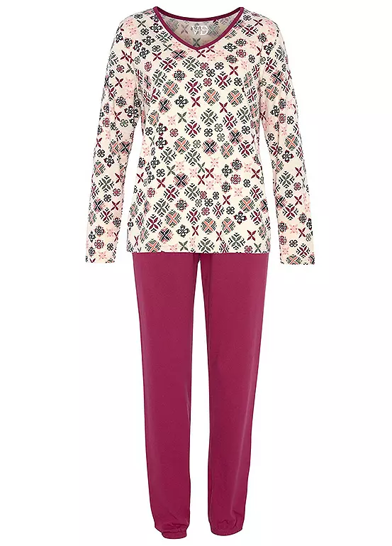 Pyjama set has a floral all-over print top in a loose fit with long-sleeves shirt. The pyjama pants have an elasticated cuffs on the legs and side pockets.