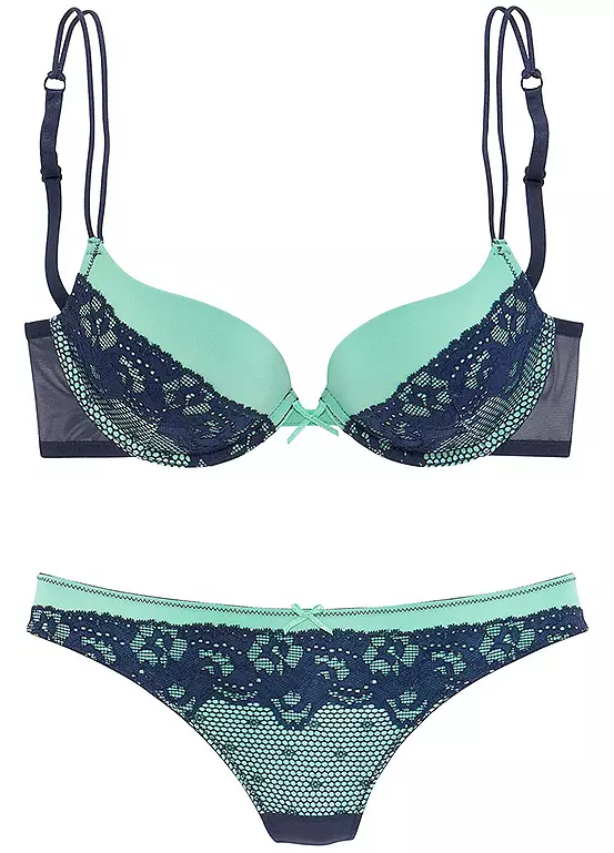 This stunning set features a lace push-up bra with double spaghetti straps, providing just the right amount of lift and support. The side panels are made of delicate mesh fabric, adding a touch of elegance to the design. The non-removable padding ensures a seamless silhouette while enhancing your natural curves. Complete the look with the matching lace thong, designed for ultimate comfort. Elevate your lingerie collection with the Melrose Push-Up Bra & Thong Set.