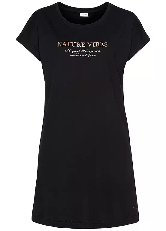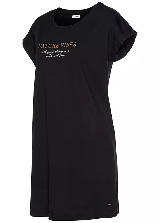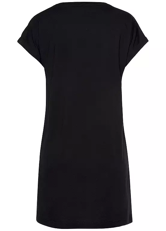 With this nightdress, you no longer have to decide in the evening what your nightly outfit should look like. The comfortable nightdress with rolled-up sleeves and a round neckline particularly impresses with its super-soft cotton blend, which makes you feel great when you go to bed. You can move around very well in it and it gives you comfortable legroom, even at night. Cosiness is very important! Nightdress from Lascana. Round neckline. In an oversize look.