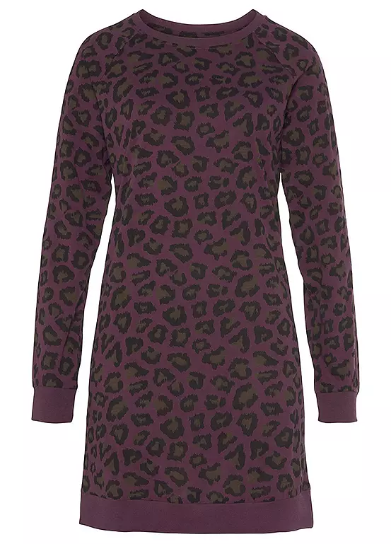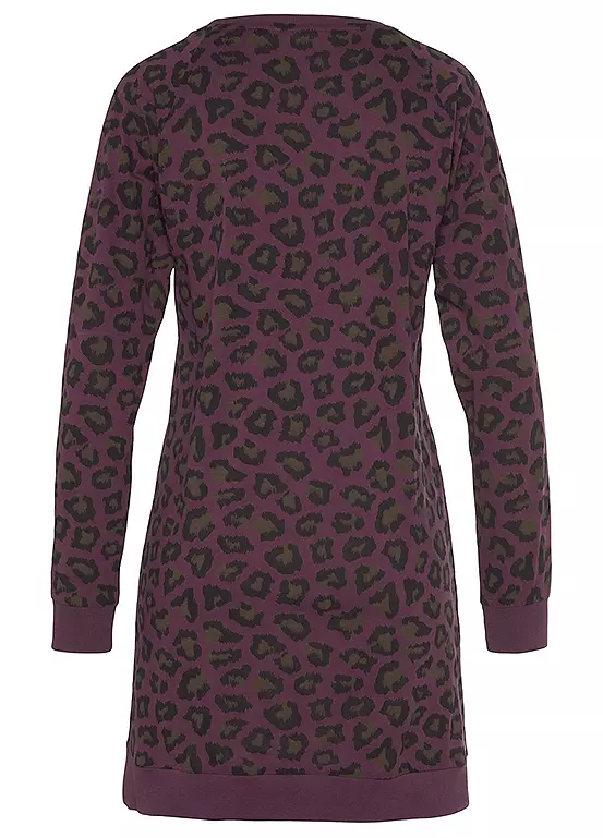 Long sleeve animal print nightie with raglan sleeves, a contrasting hem and elasticated ribbed cuffs. In soft single jersey made from cotton.