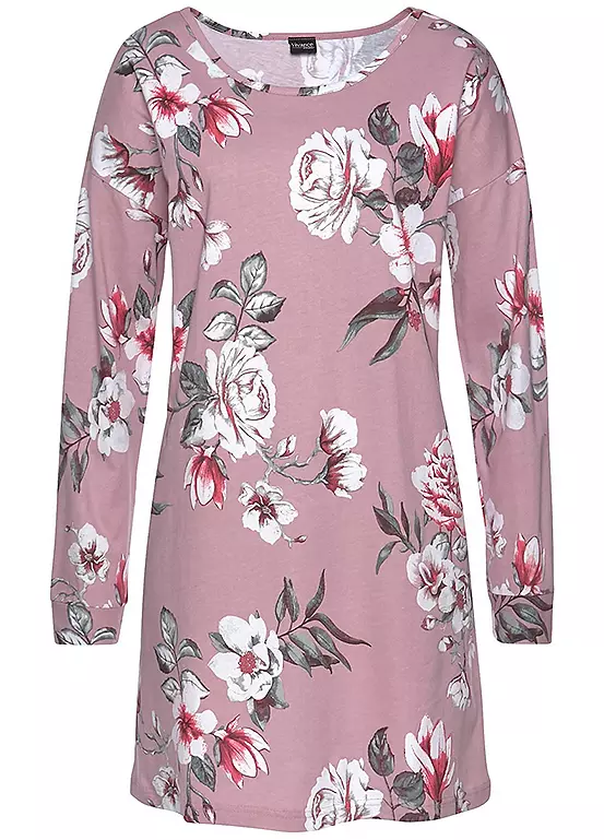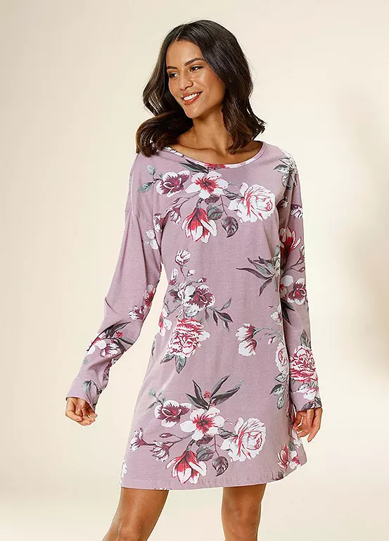 Made from soft single jersey cotton fabric, this short nightie comes in a beautiful all-over floral print with long sleeves and a round neckline.