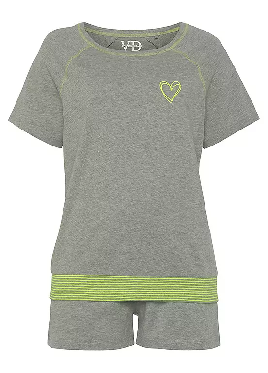 The Vivance Dreams’ Heart Print Short Pyjamas, the perfect blend of comfort and style. Made from a soft cotton mix, these printed pyjamas are designed to keep you cool and cosy all night long. The shorts provide a low waistline for a comfortable fit, while the short sleeves add a touch of elegance. Embrace your love for fashion with the adorable heart print featured on these pyjamas. Upgrade your sleepwear collection with Vivance Dreams’ Heart Print Short Pyjamas. Short sleeves. Heart print. Machine washable. 60% Cotton, 40% Polyester.