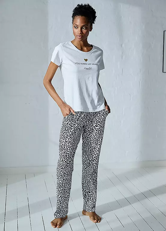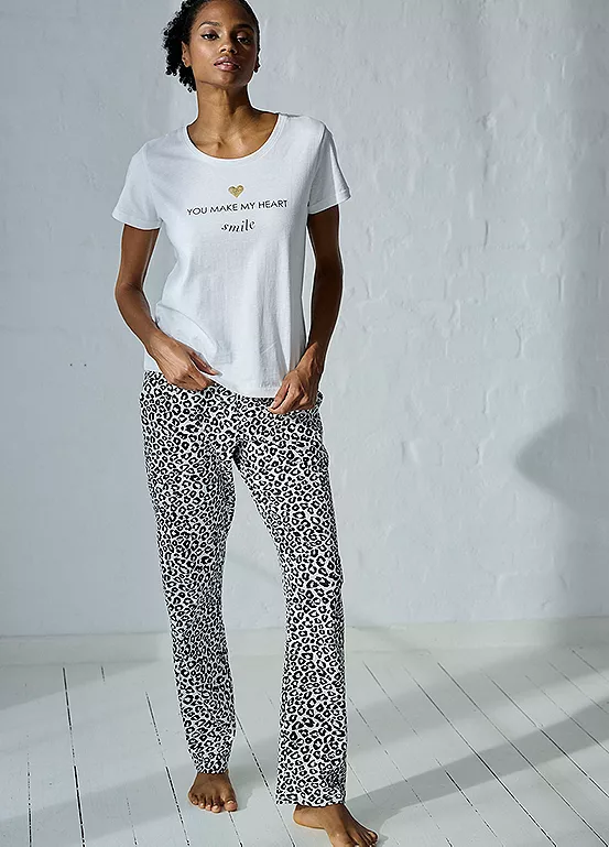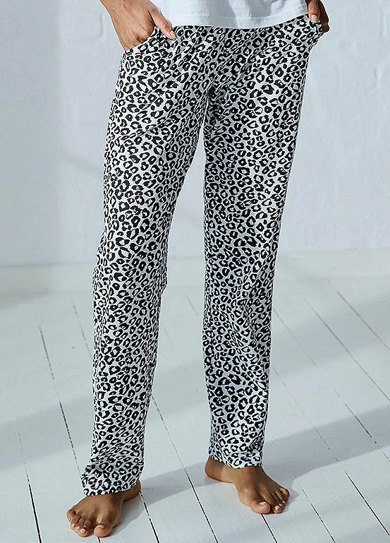 Pyjama pants with an all-over leopard print, side pockets and a drawstring waistband made from 100% cotton.