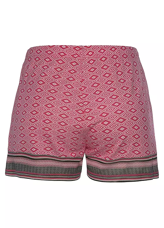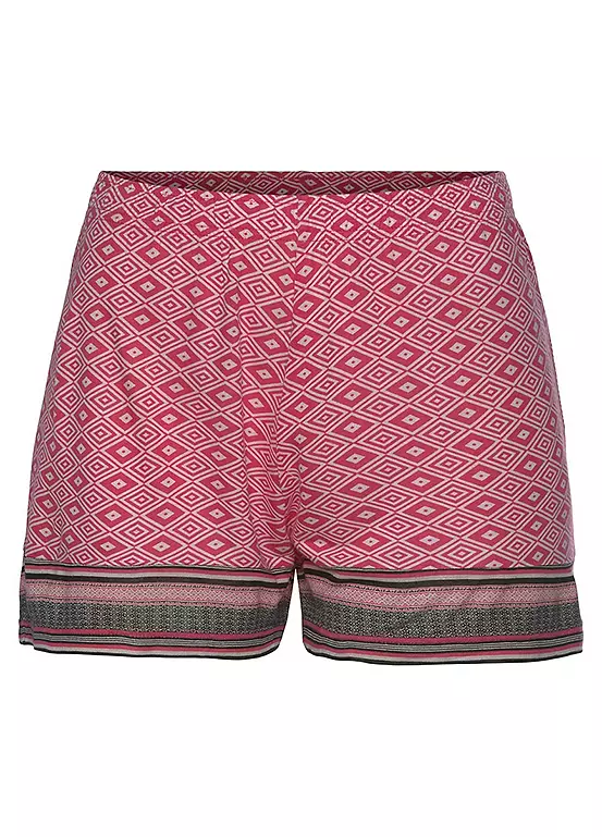 Comfortable sleep shorts in a beautiful ethnic pattern print with a contrasting trim, an elastic waistband and short, straight legs. Finished in a soft single jersey fabric. Soft single jersey fabric.